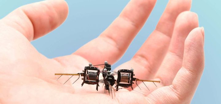 A flying robot the size of a postage stamp can hover for up to 15 minutes without breaking, and it can perform acrobatic manoeuvres